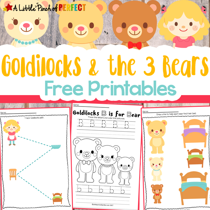 Children can take a closer look into the classic fairy tale, Goldilocks and the Three Bears, with our free printable activities. The 13 page printable set includes pages for pre-writing, letters and numbers, sorting, and more!