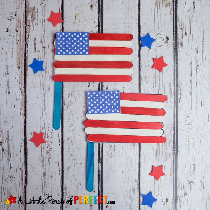 Kids can celebrate Red, White, and Blue this 4th of July with this easy American Flag Popsicle Stick Craft.