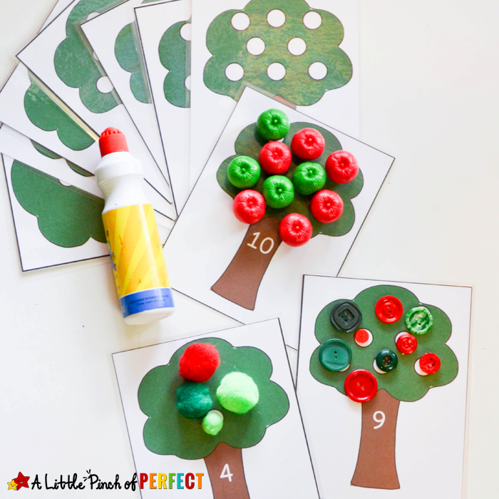 To go with our Apple Activities I made some cute numbered trees that can be used for counting, addition, fine motor skills and one-to-one correspondence.
