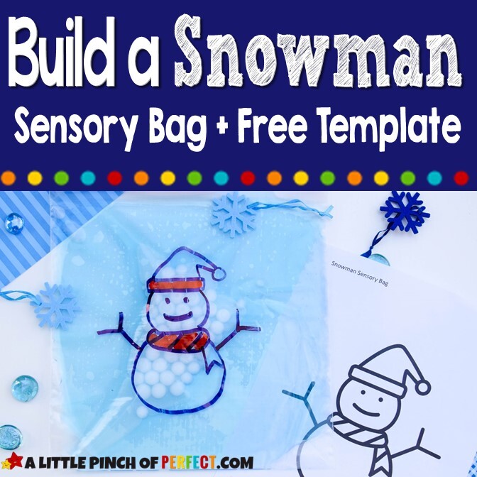 Make a build a snowman sensory bag with the template and directions for winter fun for kids.